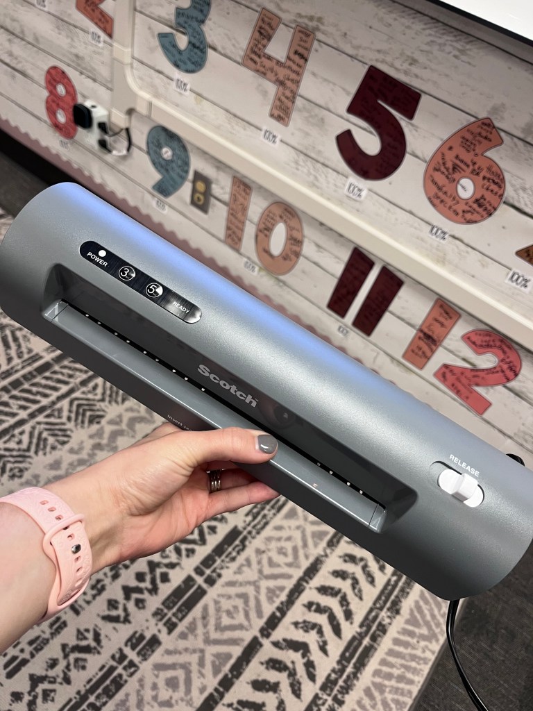 - Personal Laminator: I have used my own laminator every single year of teaching and cannot recommend them enough. I am fortunate enough to have a large laminator at my school, but as far as classroom decor, or things that I want laminated in a thicker quality, I prefer to do it myself. They last for years and are perfect for small jobs like laminating name tags and labels. Here is the laminator I use in my classroom as well as the laminating sheets. #ad